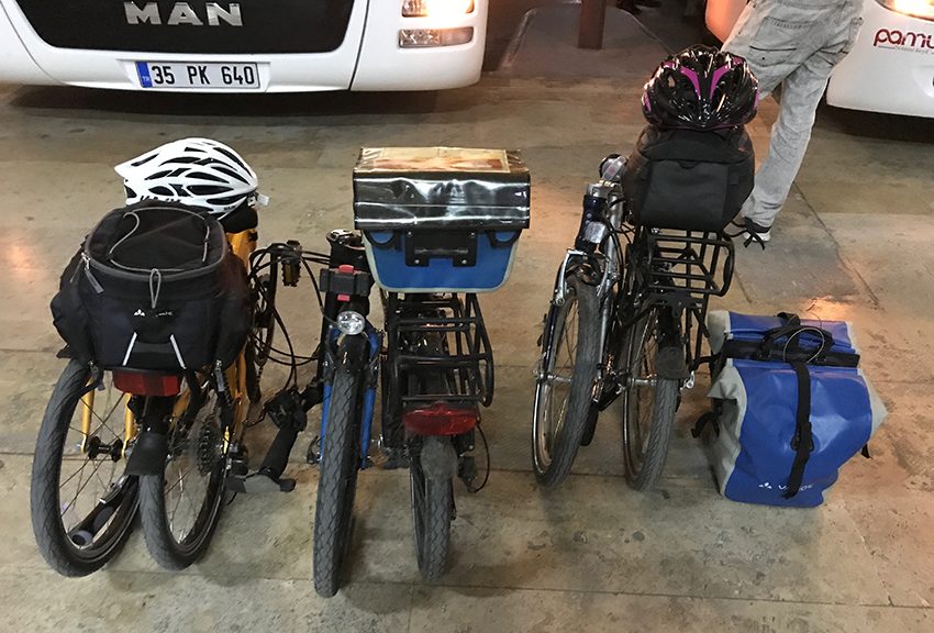 Cumartesi akşamı Muğla otogarında bisikletlerimizi katlamış otobüsün gelmesini beklerken tur enerjimiz geldi bile. Üç katlanır bisikletle gidiyoruz. O nedenle otobüsler almaz endişesi yaşamıyoruz. ?