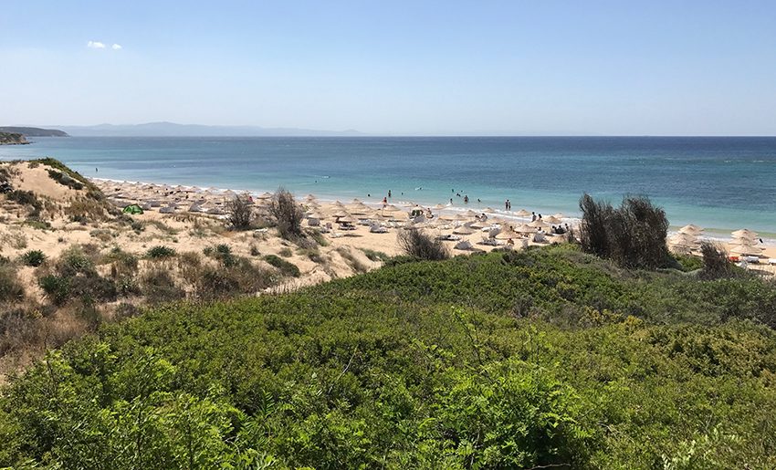 Ezine, Geyikli yolu epey dar bir yol ve kamyon trafiği yoğun. Her zaman mı böyle yoksa bize mi denk geldi bilemiyorum. Dikkatli ve korkuyla pedal çeviriyoruz. Arada durup fotoğraf çekmeyi ihmal etmiyoruz tabii…