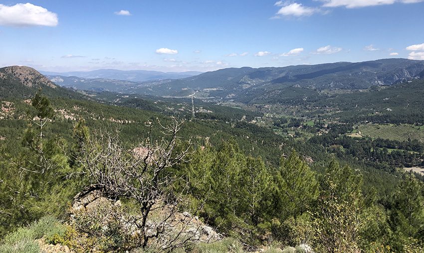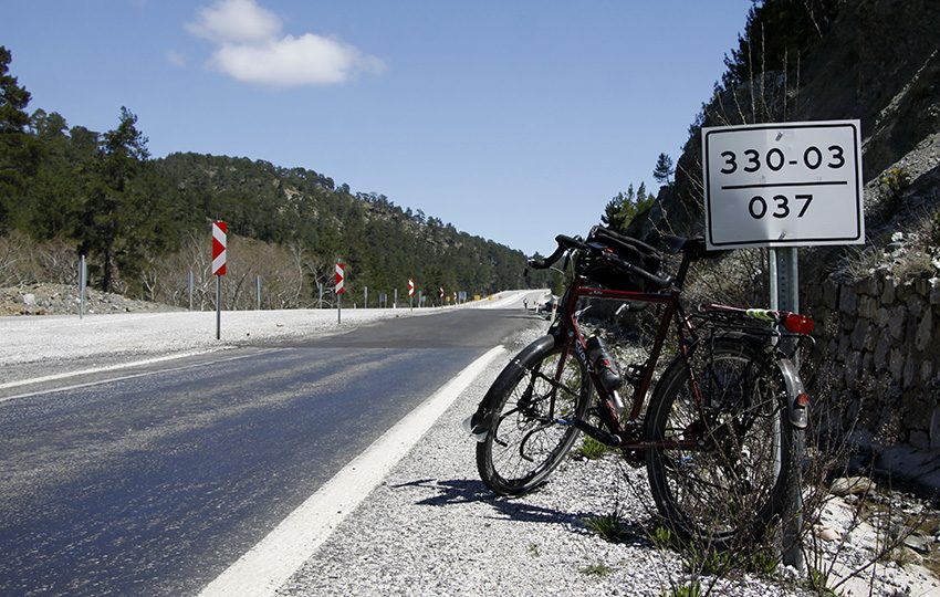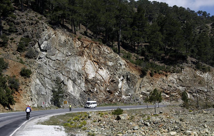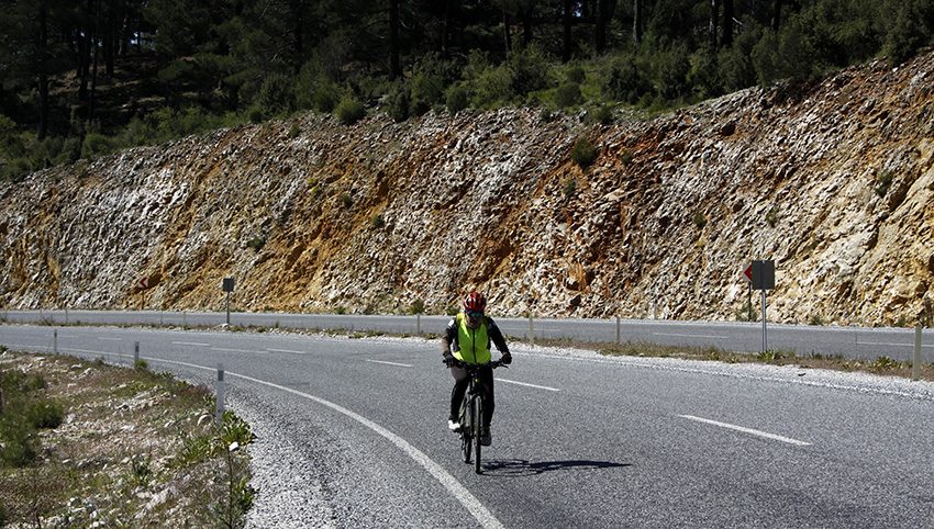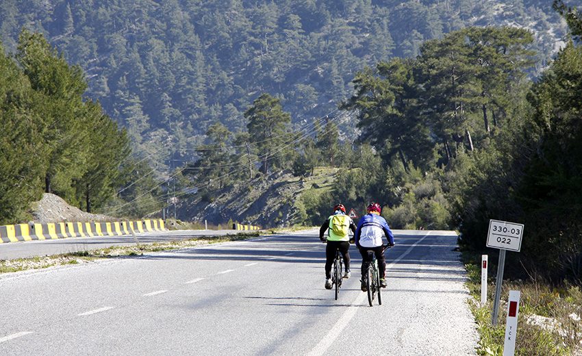 Bir süre daha dik tırmandıktan sonra eğim biraz daha insaflı hale geliyor. Tabii yorgunluktan kendini iyiden iyiye hissettiriyor. Feridun Abi ve İsmet Hoca önden gittiler, Yılanlı yoluna kadar devam ettiler. Orada nasıl olsa buluşuruz diyerek ben biraz daha yavaş pedallamaya devam ettim. Çok geçmeden anayola bağlanan noktada buluştuk ve biraz daha enerji depolayarak dinlendik.