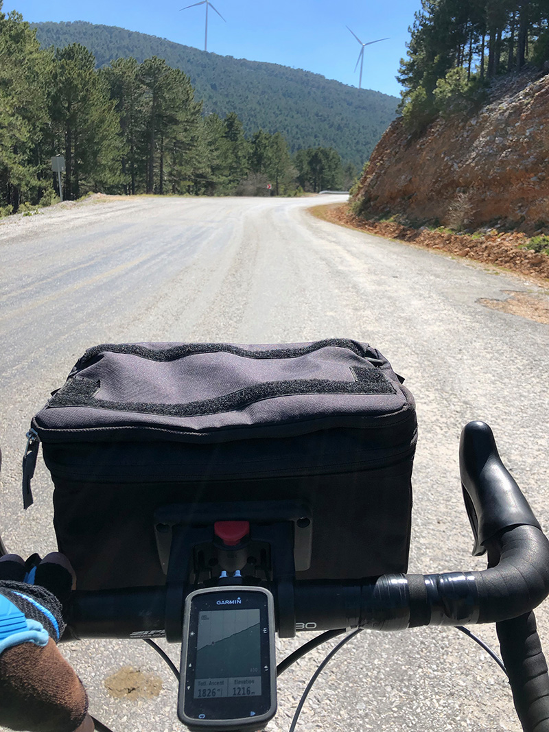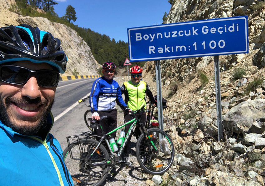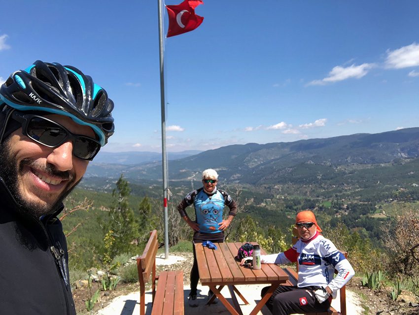 Rampanın bir kısmında su takviyesi ve soluklanmak için duruyoruz. Tabii burada yalnız değiliz. Abinin birisi çekmiş arabasını açmış müziğini beynimizi yakıyor. O nedenle ne manzaranın tadını çıkarabildik, ne de dinlenebildik. Daha fazla işkenceye maruz kalmamak için toparlanıp tekrar pedallamaya koyulduk.
