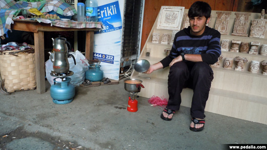 Akşam yemeğimizi de yine afiyetle yiyoruz. Burada lokanta inşaa eden ekipteki abiler ile tanışıyoruz. Gitmeden önce tüplerini ve demliklerini çay demlemeye kullanmak için izin istiyoruz. Sağ olsunlar onlarda çayımıza, şekerimize hatta bardaklarımıza kadar vererek gidiyorlar.