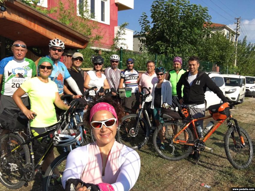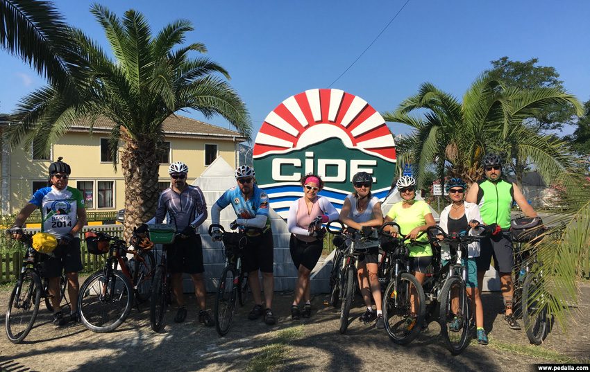 Kaldığımız ev Cide’nin biraz dışında Gebeş’te olduğu için kahvaltımızı biraz pedalladıktan sonra Cide merkezde yapacağız. Tabii Cide hatırası olarak burada fotoğraf çekilmeden devam edemezdik. 🙂