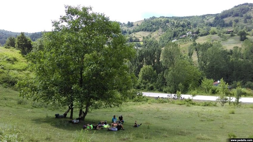 Bir güzel karnımızı doyurduktan sonra biraz dinlenmek ve uzanmak istiyoruz. Bunun için ilçeden çıkıp uygun bir yer arayışına giriyoruz. Bir süre gittikten sonra aradığımız yer karşımıza çıkıyor. Bir ceviz ağacı ve altında biz 🙂 Ceviz ağacı altında yatılmaz denirmiş ama şuan onu düşünecek halde değiliz. 🙂